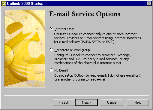 Check the box next to Internet E-mail. Click the Next button.